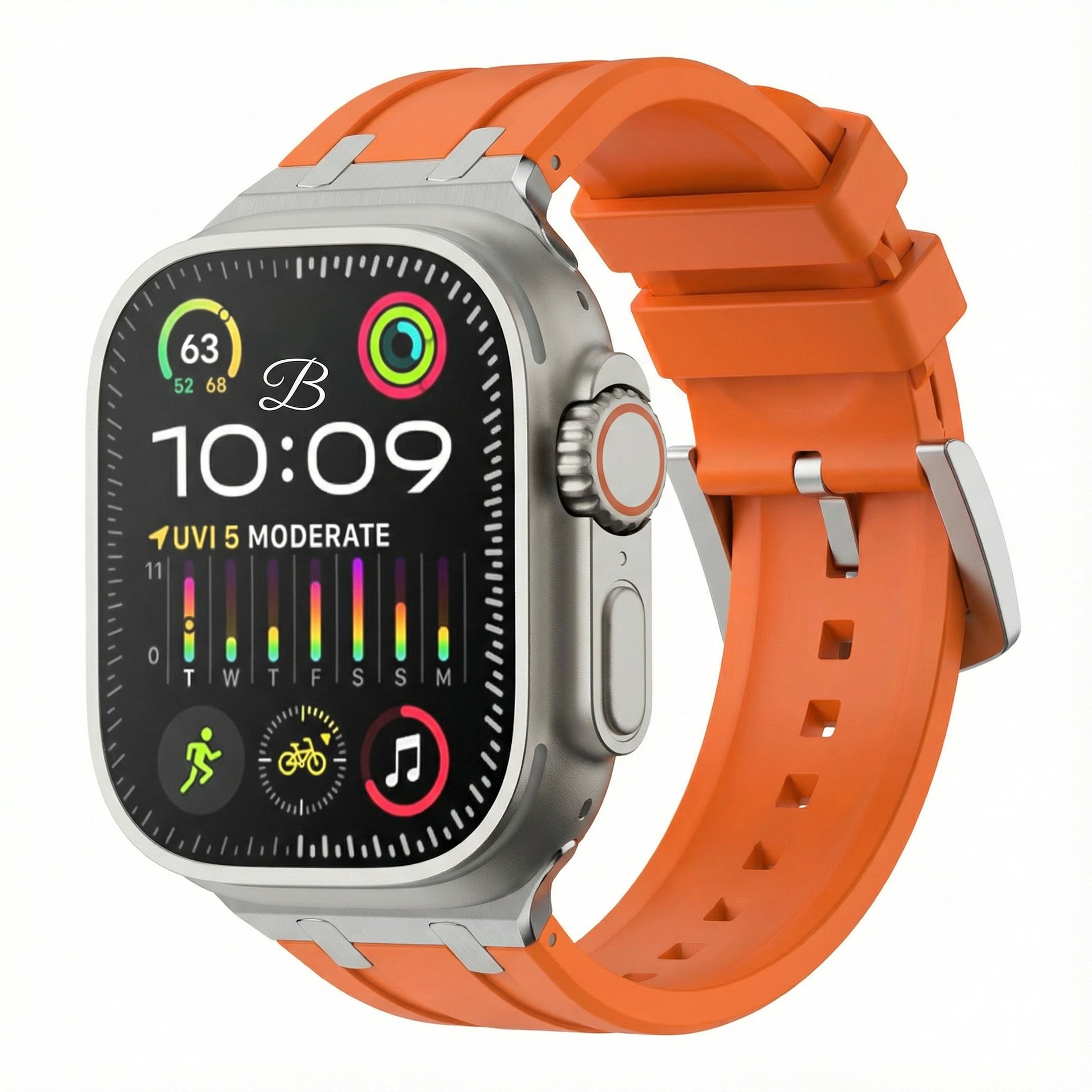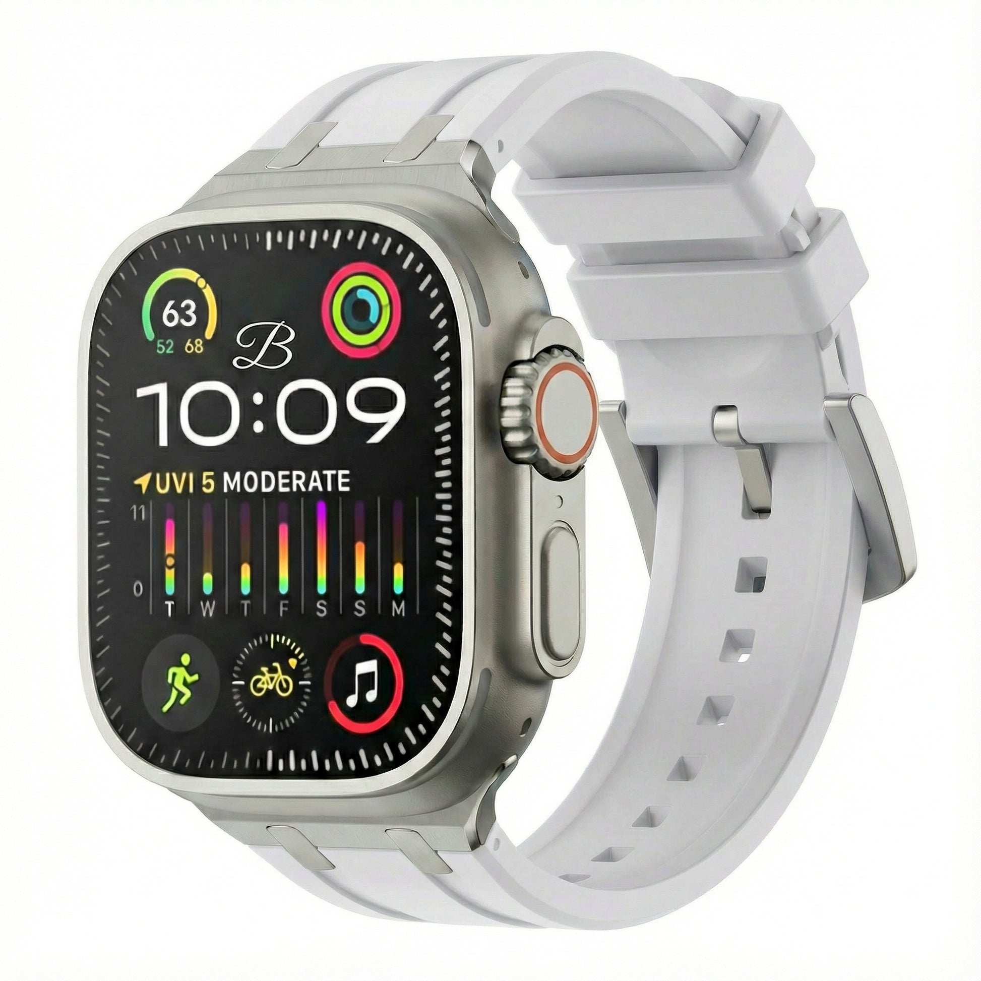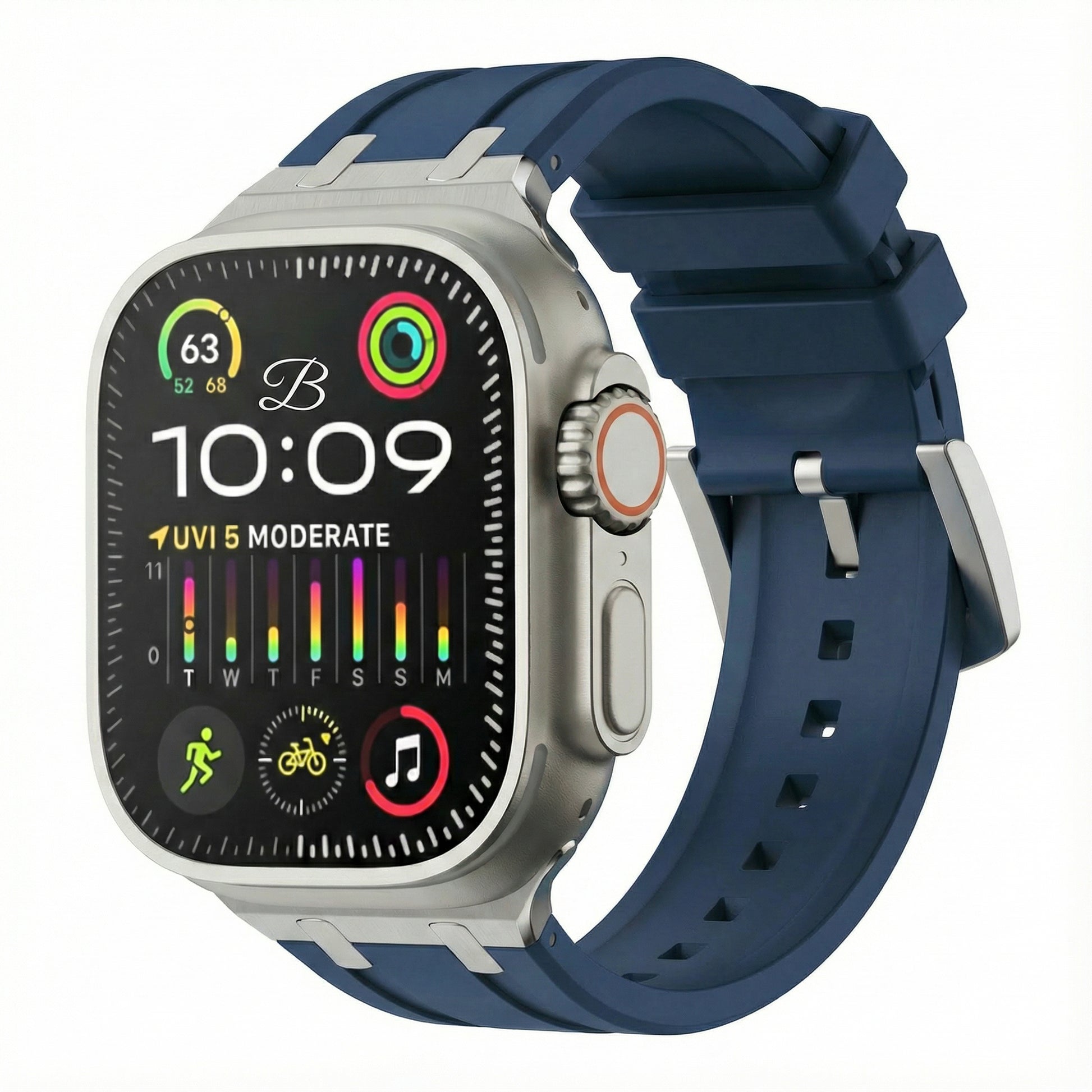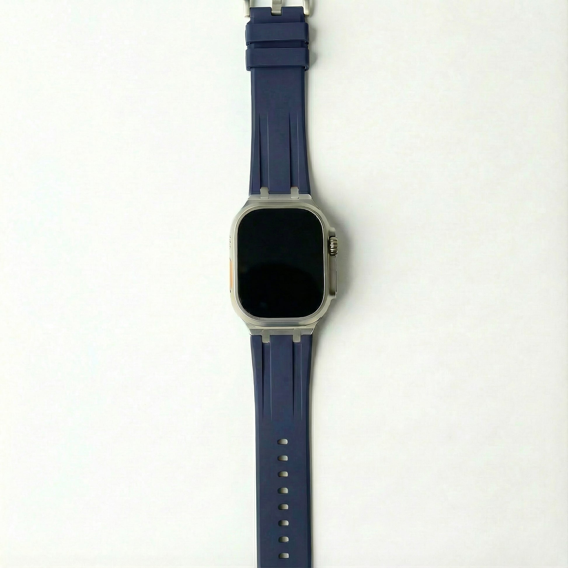 A great all-round, water-resistant strap that comprises a thick high-grade silicone band and robust stainless steel buckle. Designed to look great when wearing a suit or putting the hours in at the gym.